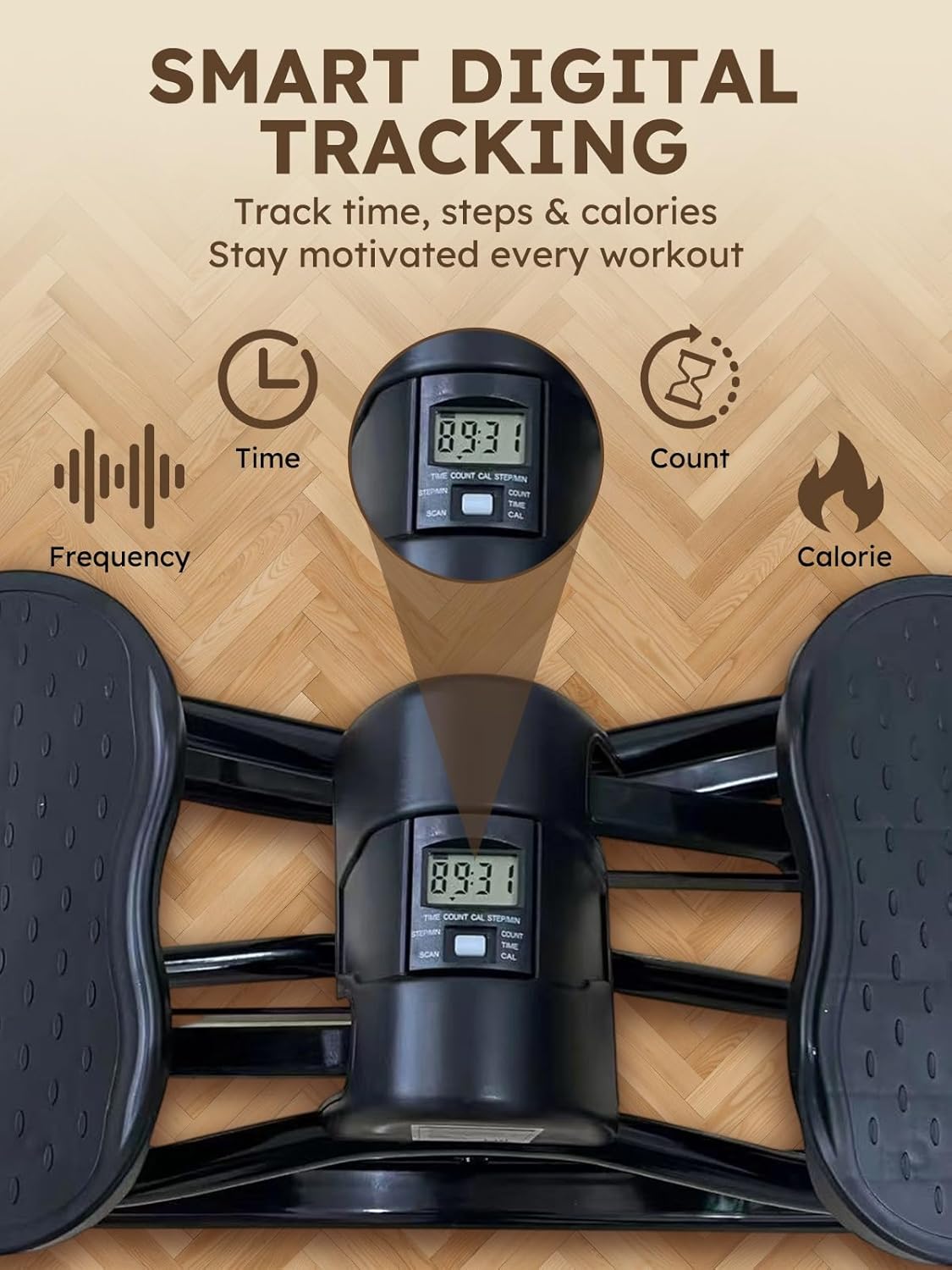 Smart Digital Tracking: Built-in digital display tracks time, steps, and estimated calories to help users monitor workout progress clearly, stay motivated, and maintain consistent fitness routines without relying on external apps or complicated setup