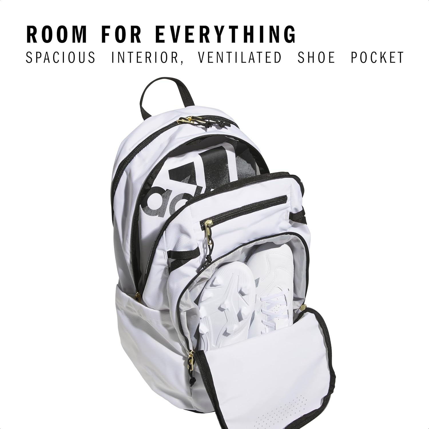 Zippered pocket with ventilation to air out your dirty shoes and gear