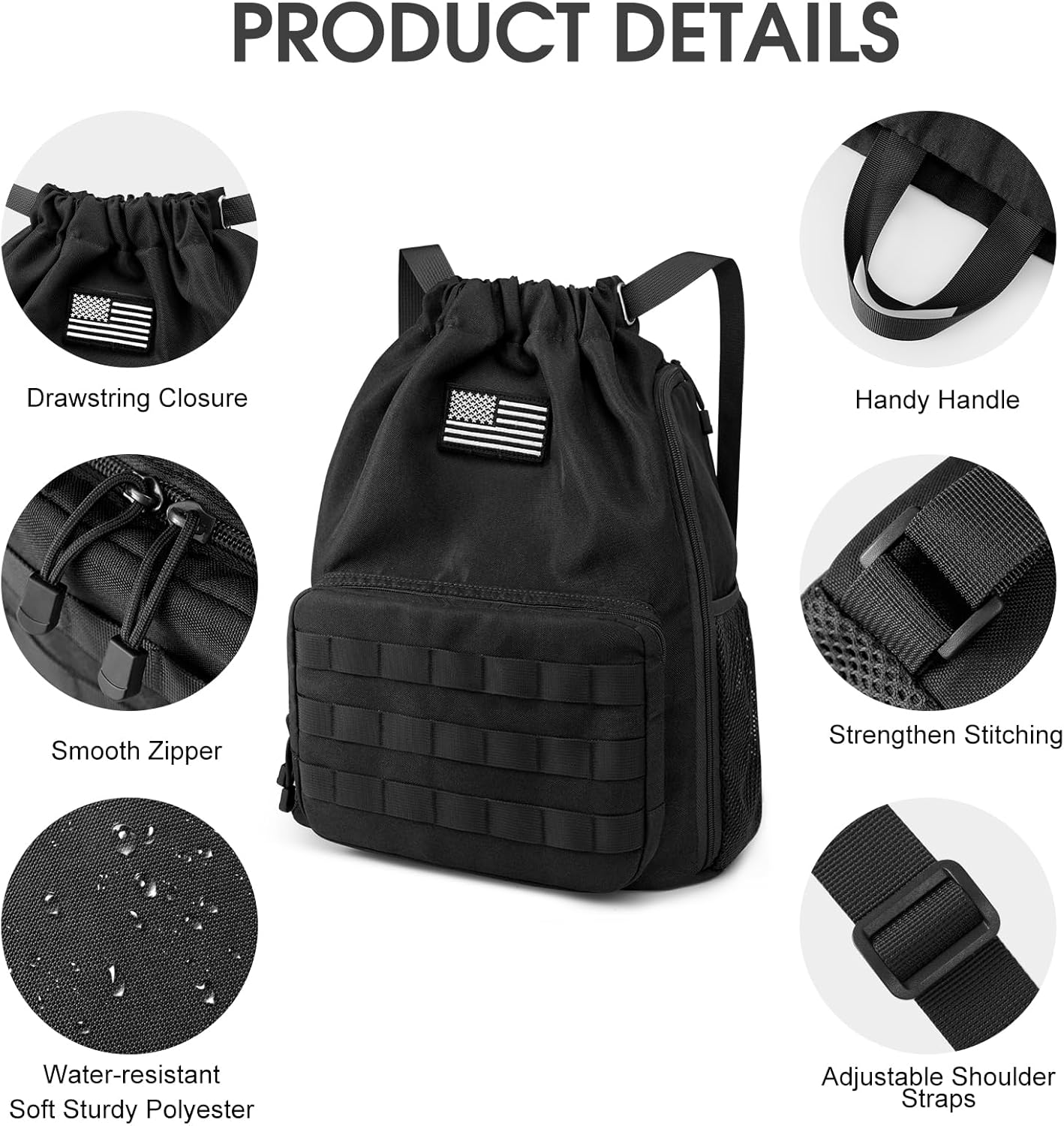 8 reviews for G4Free Drawstring Backpack Gym Backpack Soccer Basketball Bag with Shoes Compartment Tactical Water-Resistant String Sports Bag for Men Women(Black)