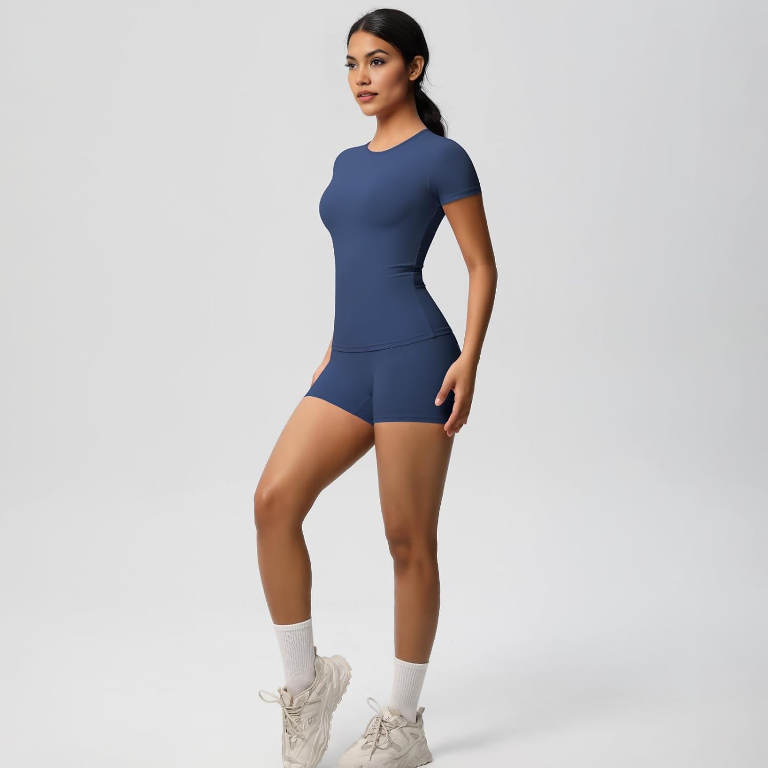 8 reviews for Women’s 2 Piece Workout Set – Short Sleeve T-Shirt & High Waist Shorts Activewear for Yoga, Gym & Running