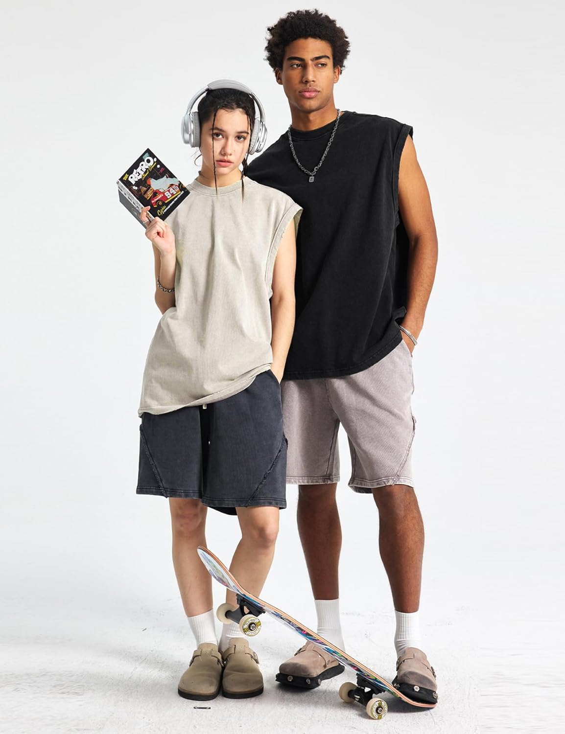 8 reviews for Yimoon Mens Sleeveless Tank Tops Acid Wash Cotton Muscle Shirts Loose Workout Tshirts Running Gym Tees